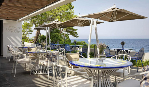 Am tiefsten Punkt des Hotels gelegen, direkt über dem Strand und umgeben von der grünen mediterranen Vegetation, bietet Brioni Lungo Mare ein unvergessliches Erlebnis für alle Sinne. Hier können Sie sich mit dem lokalen Craft-Bier erfrischen, an heißen Sommertagen das besondere Risotto mit einem leichten Salat genießen und abends den besten frischen Fisch speisen. Beim Sitzen auf der Terrasse unseres Bistros folgt dem Ganzen das besondere imaginäre Gefühl, das Meer in den Händen zu halten.
