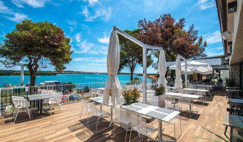The Restaurant has been reopened after two year renovation. The owner Davor Jovanović points out that the secret of good success is an everyday offer of fresh fish (devilfish, dentex, bass...). Apart from fresh fish, the restaurant offers squids, shells, homemade pasta and bread, original Istrian olive oil, more than 80 wine labels (mostly Istrian) and many more. Some of the specialities you can enjoy in Sopravento are: ravioli with shrimps and basil, homemade Istrian pasta (fuži) with truffles, Adriatic cuttlefish with gnocchi made of cornflour, bark file with jelly rice and much more. With a large selection of top-quality food, the owners also took care of good music; every Friday the academic guitarist and guitar professor Goran Benevrkić has a live show.