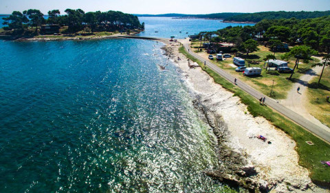 Der Strand Kažela liegt an der Südostküste der Halbinsel Istrien und ist ein wahres Paradies für Strandliebhaber. Der Strand, der Teil unseres Campingplatzes Arena Grand Kažela ist, erstreckt sich über 2 Kilometer und bietet eine breite Palette an Aktivitäten und Annehmlichkeiten für alle Altersgruppen.